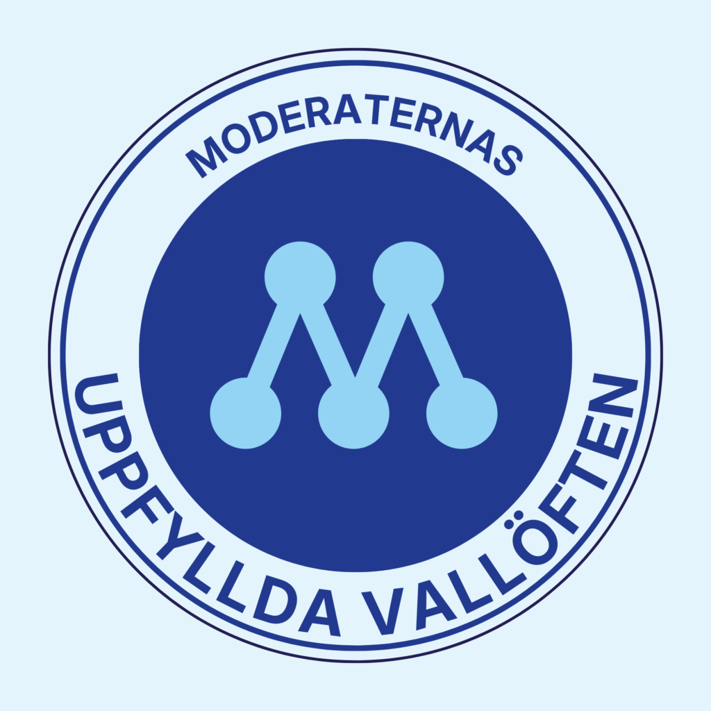 Moderaterna är frihetens och individualismens parti. Vi står för frihet med ansvar, öppenhet med lag och ordning, glädjen över framgång men även stöd vi motgång. Vår politik får ordning på Sverige och vi har konkreta lösningar på de största samhällsproblemen och reformer för framtiden. Vi är partiet som anser att staten inte ska vara överallt, men vara stark där den behövs som mest.