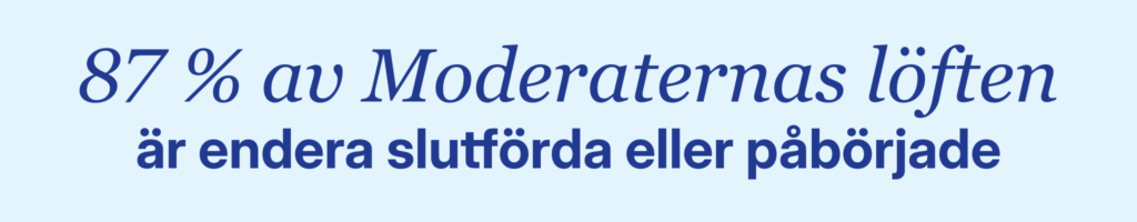 Den moderatledda regeringen har fattat över 15.000 beslut för att få ordning på Sverige. Nu är 87% av Moderaternas 240 vallöften uppfyllda eller påbörjade.